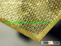 WG-7: Wired glass laminated with brass woven wire mesh.A part of wired glass laminated with woven wire mesh edge.